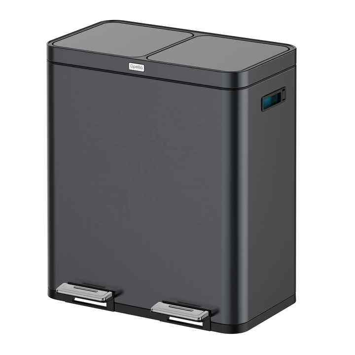 Poubelle de cuisine d'intérieur en acier inoxydable à 2 compartiments Poubelle de recyclage double en métal noir