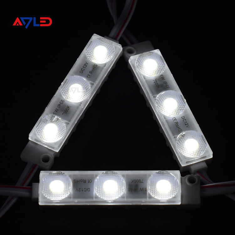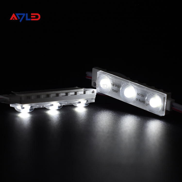 Lumières publicitaires LED d'intérieur IP68 1W 7000K, LED injectées 3 modules haute efficacité DMX 160LM/W 24V/12V, module LED pour enseignes rétroéclairées