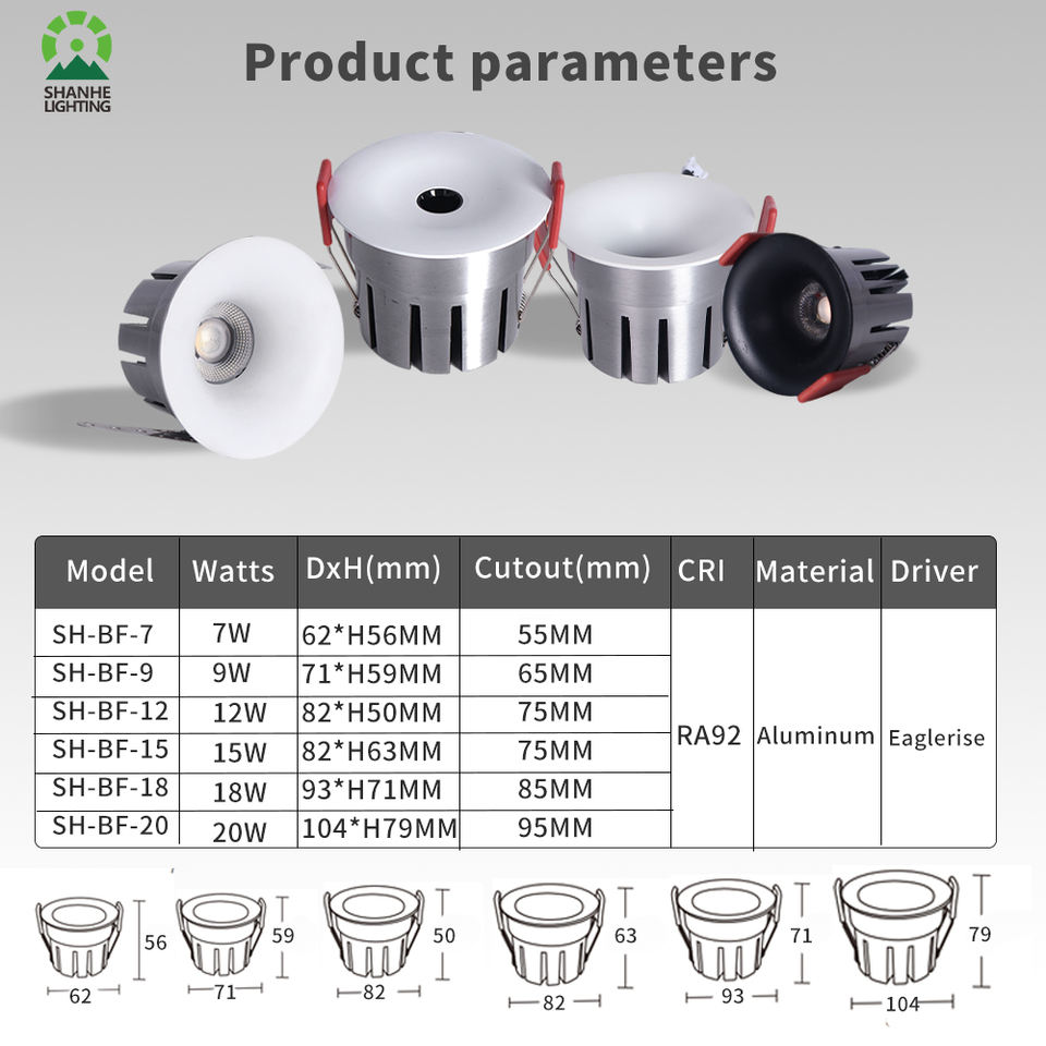 Indoor Lighting Round Recessed Spotlight Adjustable SMD COB Downlight 7w 9w 12w 15w 18w 20w Ceiling Led Spot Light for Hotel