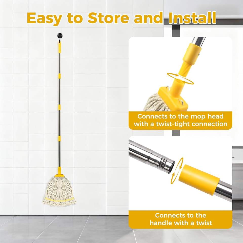 Mini serpillères en coton d'intérieur - Auto-essorage, antibactériennes, durables, manche télescopique en métal, absorption d'eau, rechargeables pour le sol
