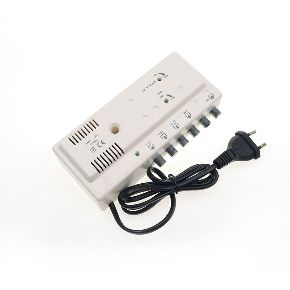 Antenne TV multibande intérieure, amplificateur de signal TV, boîtiers, câble TV, 1 entrée 4 sorties, VHF 20dB, amplificateur de signal d'antenne TV intérieure