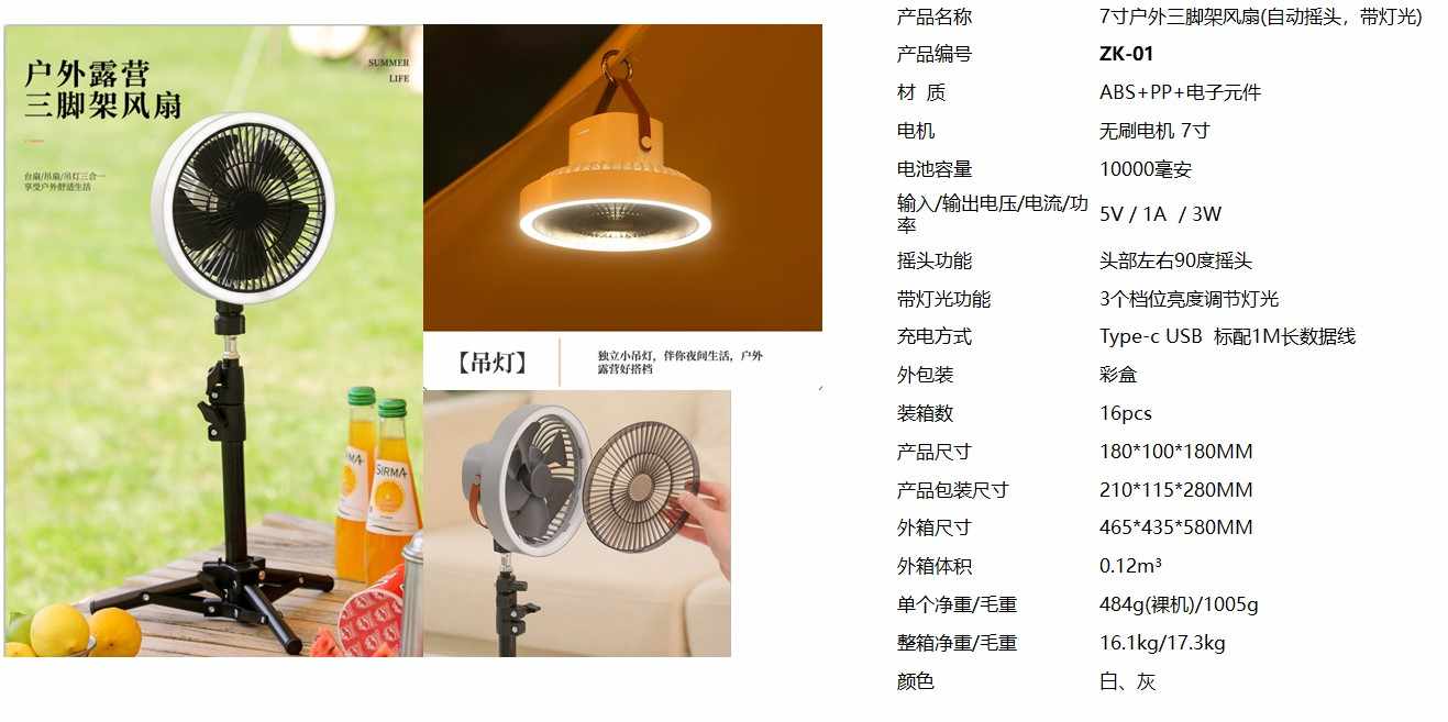 Ventilateur de plafond pour mini tente de camping avec lumière LED, alimenté par batterie, USB, intérieur et extérieur