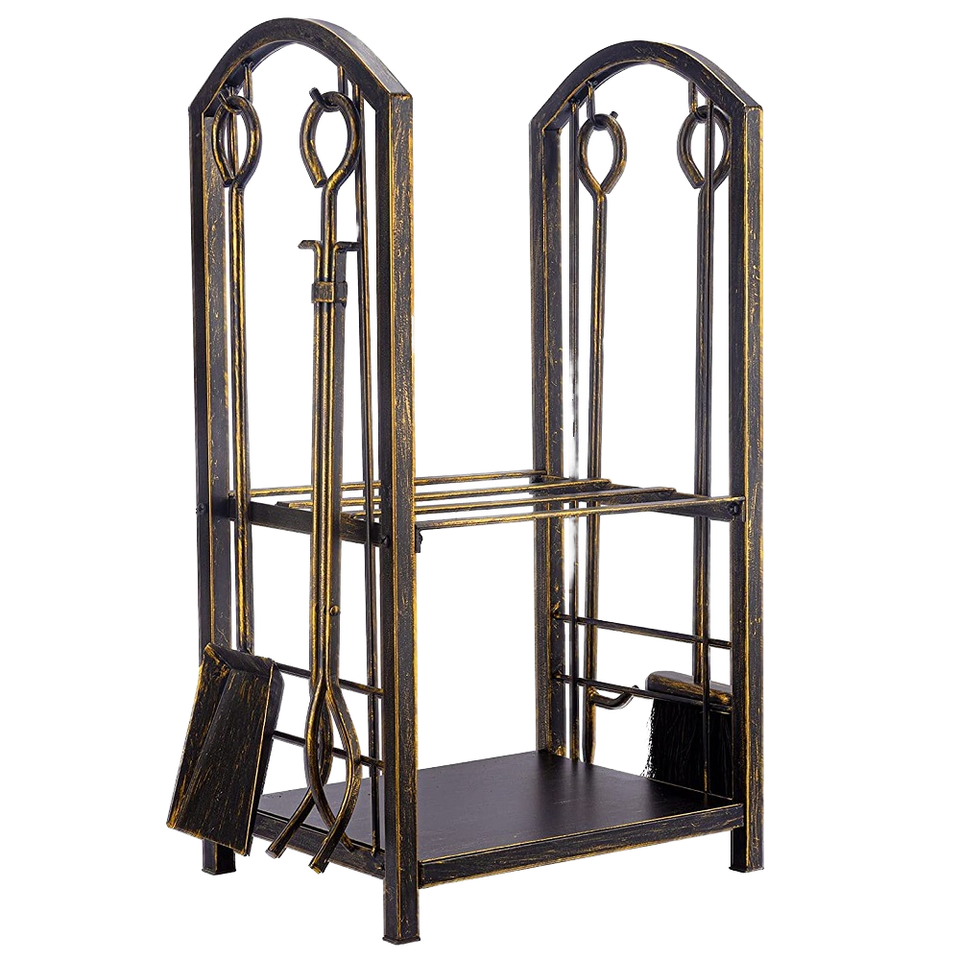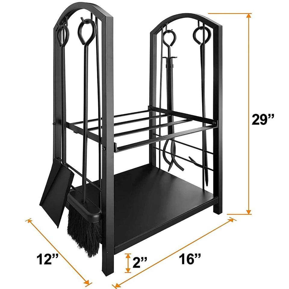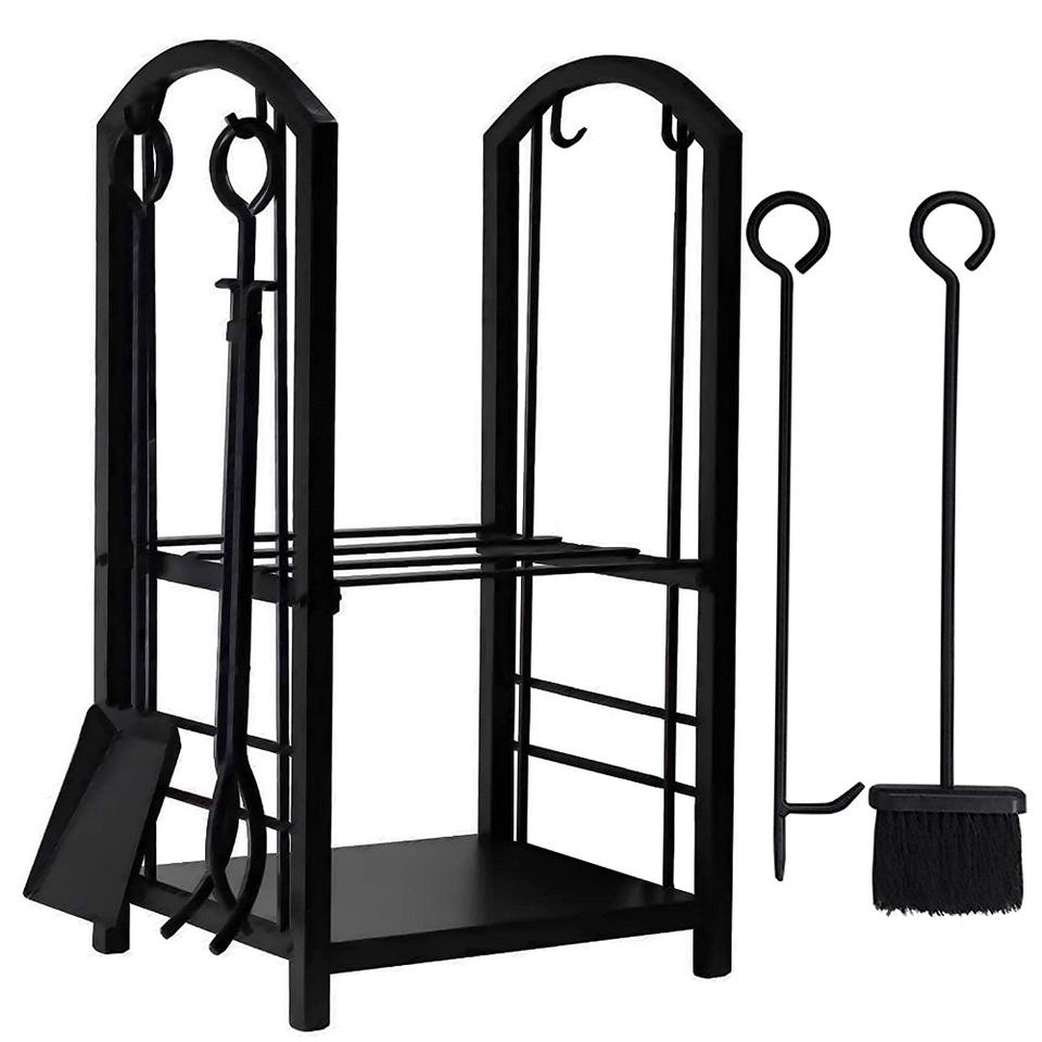 Support à bois de chauffage intérieur/extérieur avec 5 outils en métal porte-bûches et pince à pelle à poker pour ensembles et accessoires de cheminée en bois