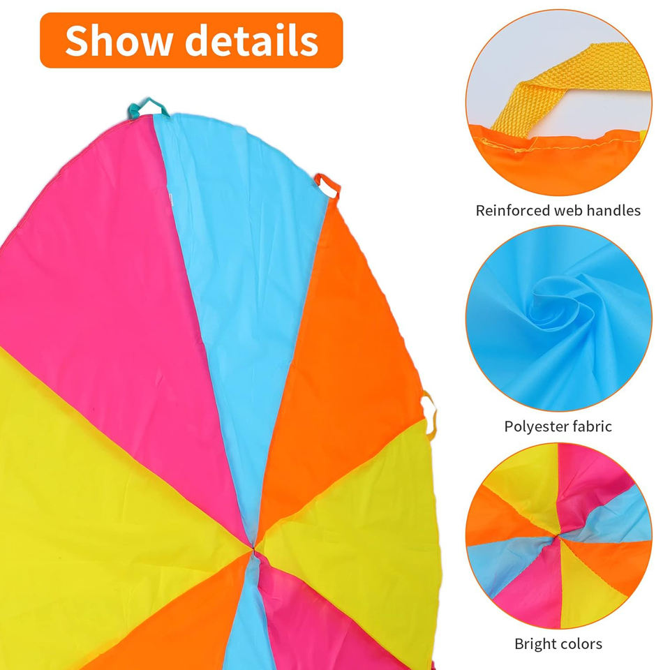 Parachute de gymnastique arc-en-ciel de 6 pieds pour enfants, avec poignées, pour jeux d'équipe et coopératifs en salle et en extérieur