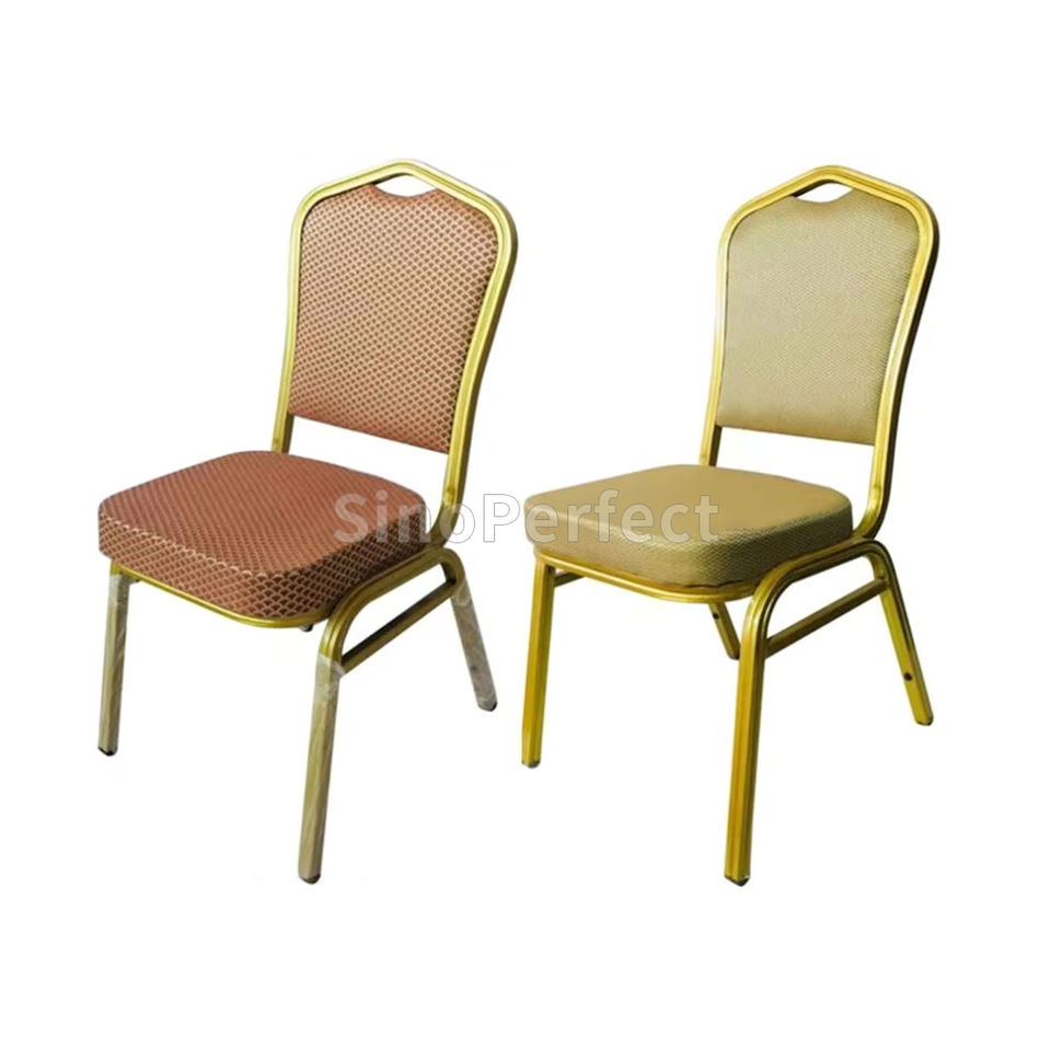 Chaise de banquet de mariage pour événements, fêtes, dîners, hôtels, églises, rembourrée en métal doré de luxe, de haute qualité, pour usage intérieur et extérieur, à vendre