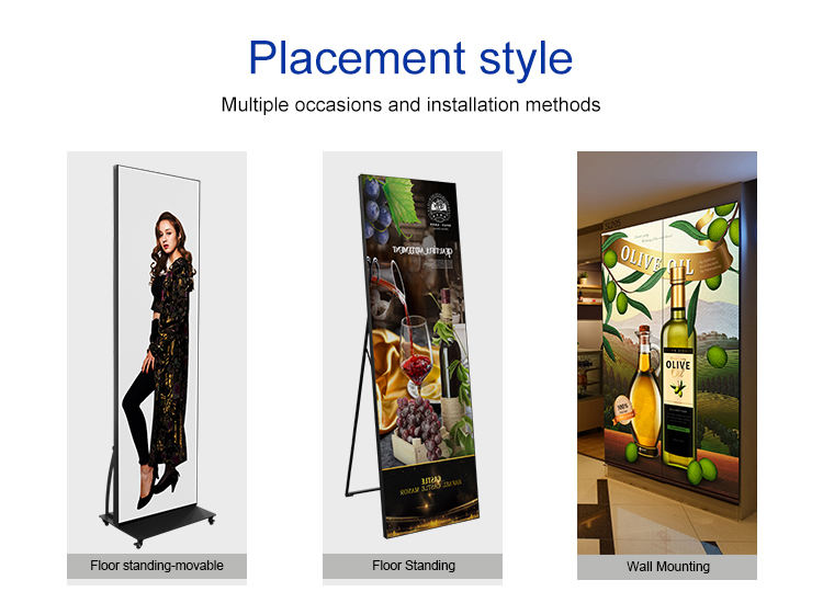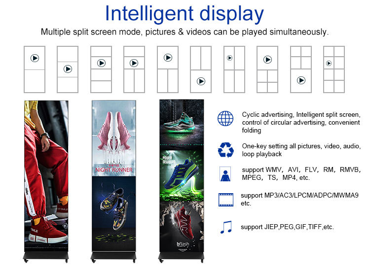 Affiche LED d'intérieur P2.5 affichage numérique affiche bannière portable affichage vertical signe de film vidéo intelligent roues support numérique