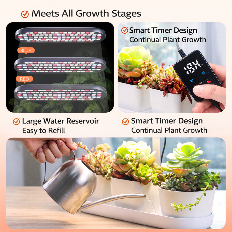 Jardinière d'intérieur avec éclairage LED à spectre complet, contrôleur double mode, système intelligent de culture de plantes avec réservoir d'eau