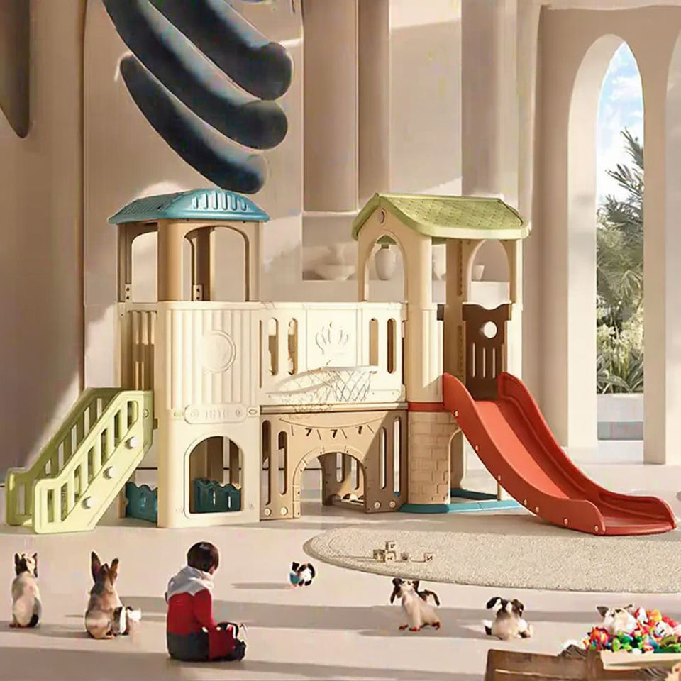 Maison de jeu intérieure pour enfants avec cadre d'escalade et toboggans multifonctionnels en plastique Escalier pour salle de jeux pour la maison Parc pour enfants