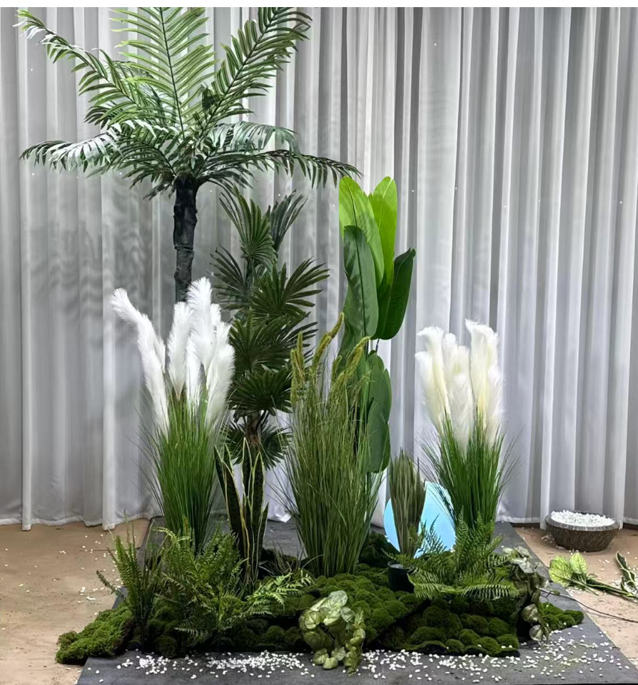 Escalier intérieur, verdure artificielle, paysage, coin, espace, décoration de plantes biomimétiques, plante en pot, simulation d'arbre, ornement