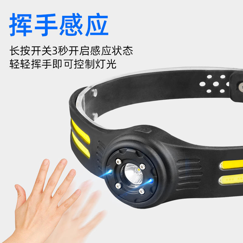 Lampe frontale à induction LED, double source lumineuse, batterie rechargeable, haute luminosité 200-299M, pour camping et course à pied