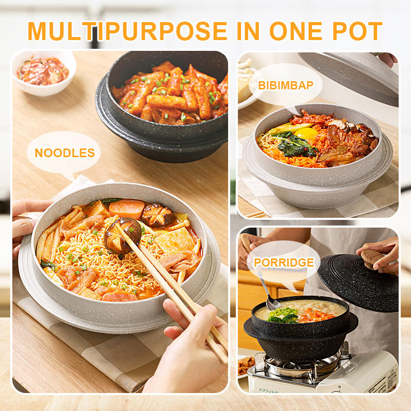 Batterie de Cuisine Coréenne à Induction en Fonte d'Aluminium, Marmite à Soupe Miso, Ragoût, Casserole, Bol Bibimbap Coréen, Faitout Hollandais, Rizière Antiadhésive