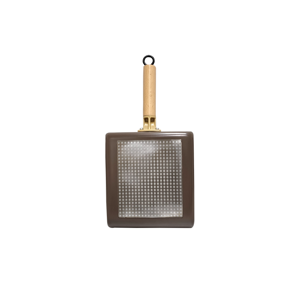 Poêle à frire multi-usage à induction, grande taille, marron, avec poignée en bois pratique, cuisine colorée, nourriture coréenne