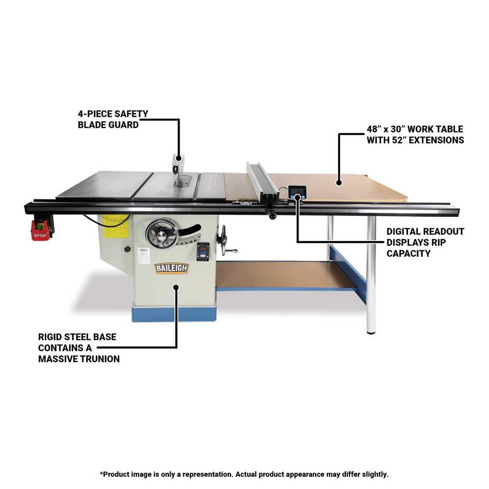 Industrial 12-Inch Table Saw with 52-Inch Rip 5 HP 220V 1Ph for Wood DIY Grade Electric & GS Certified