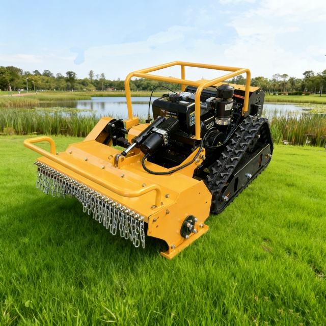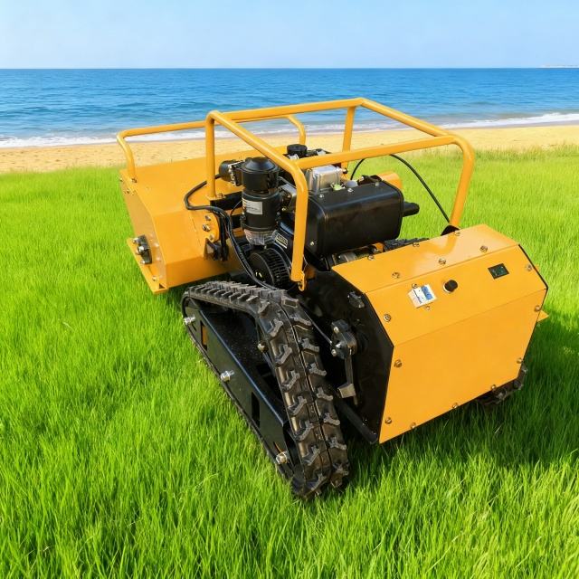 Tondeuse à gazon industrielle à chenilles 190cc, quatre temps, haute puissance, télécommandée intelligente, type fléau, pour terrains en pente et arbustes