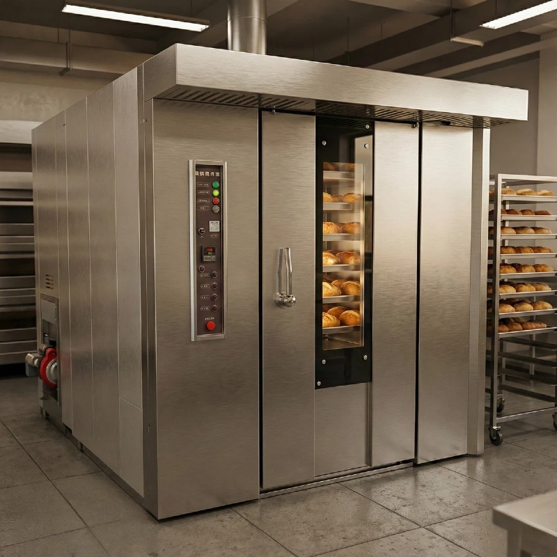 Four rotatif industriel à 64 plateaux avec système à double chariot pour grande boulangerie