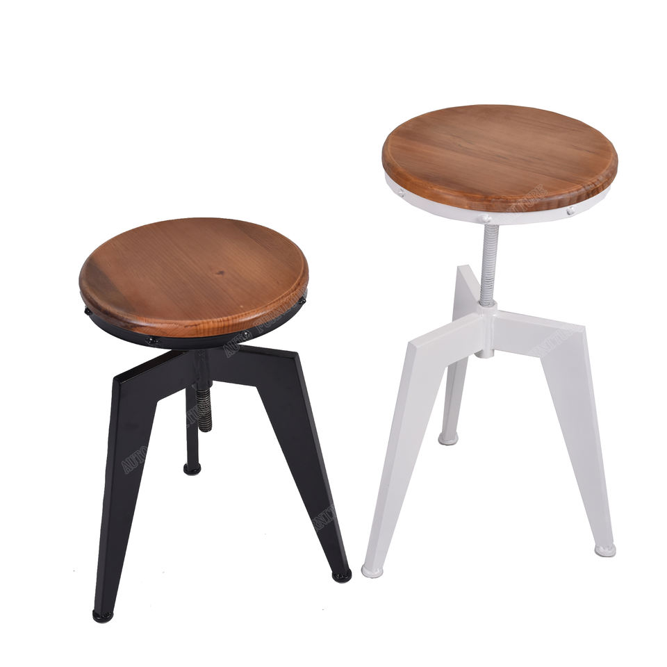 Tabouret de bar pliant en métal antique industriel avec siège en bois à vendre