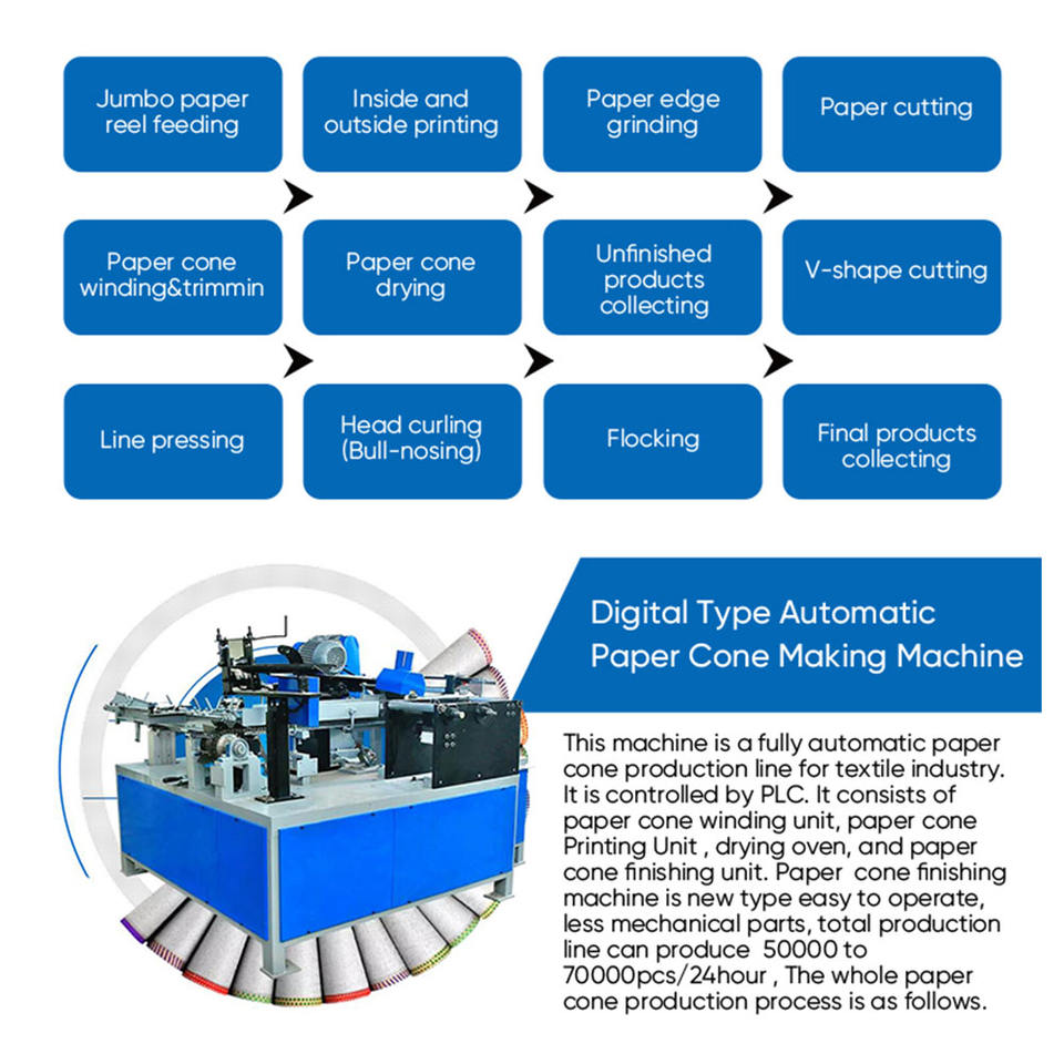 Ligne de production industrielle de machines à fabriquer des cônes en papier avec fonction de flocage automatique intégrée, collage et séchage pour le textile