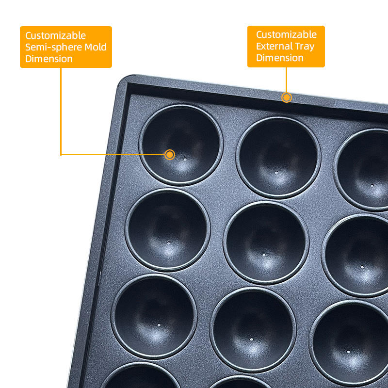 Plaque de cuisson industrielle en acier aluminisé, 60 moules demi-sphériques individuels pour friandises sphériques