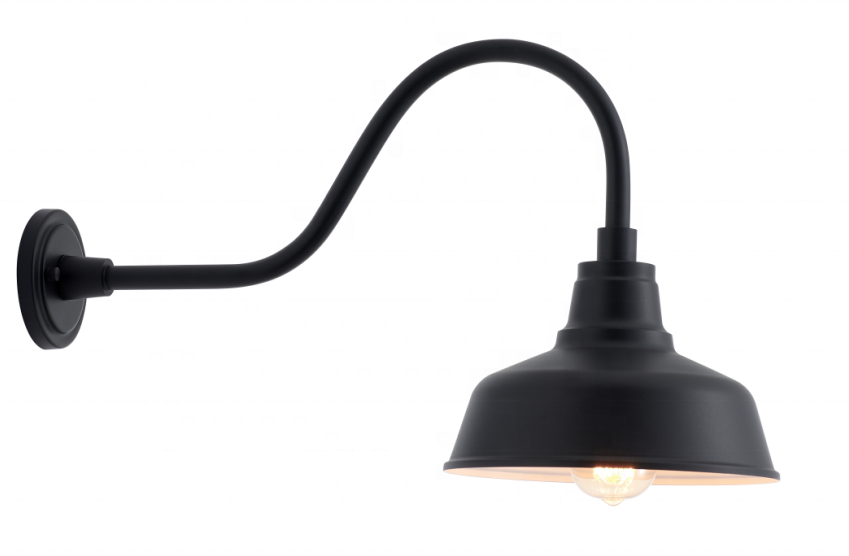 Luminaire industriel pour grange, luminaire mural galvanisé, décoration intérieure et extérieure, lumière de signalisation classique noire avec bras flexible