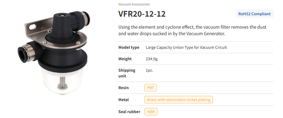 Filtre à vide VFR20-12-12Type