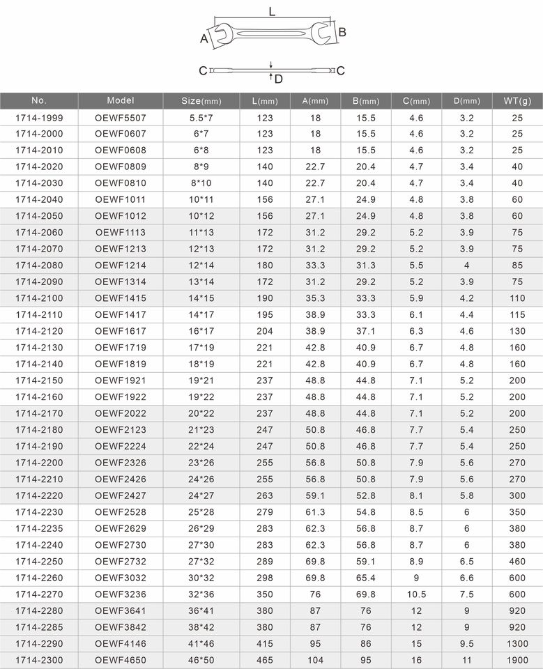 [WIGA] Jeu de clés à fourche industrielles CR-V à long manche, multi-tailles