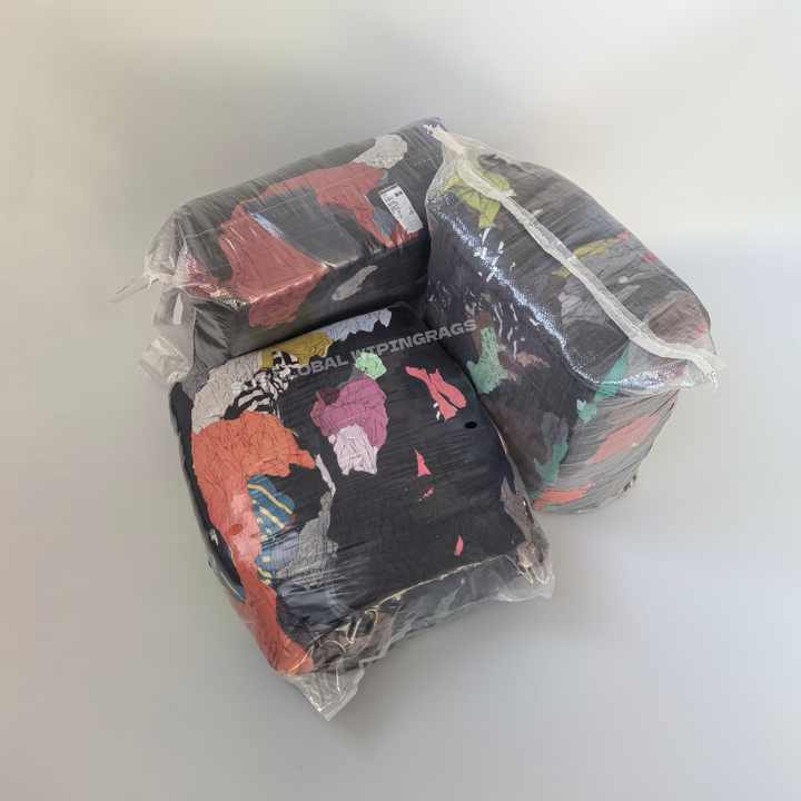 Chiffons en coton 100% mélangés de couleurs variées pour usage industriel - Chiffons de nettoyage écologiques et absorbants pour usage marin et industriel