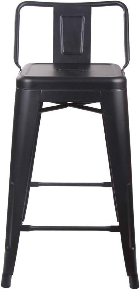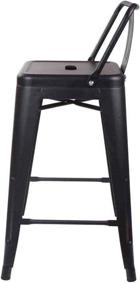Tabouret de bar en métal de hauteur comptoir industriel, noir, tabourets de bar en métal hauts avec dossier et repose-pieds pour comptoir de club, cuisine, bar