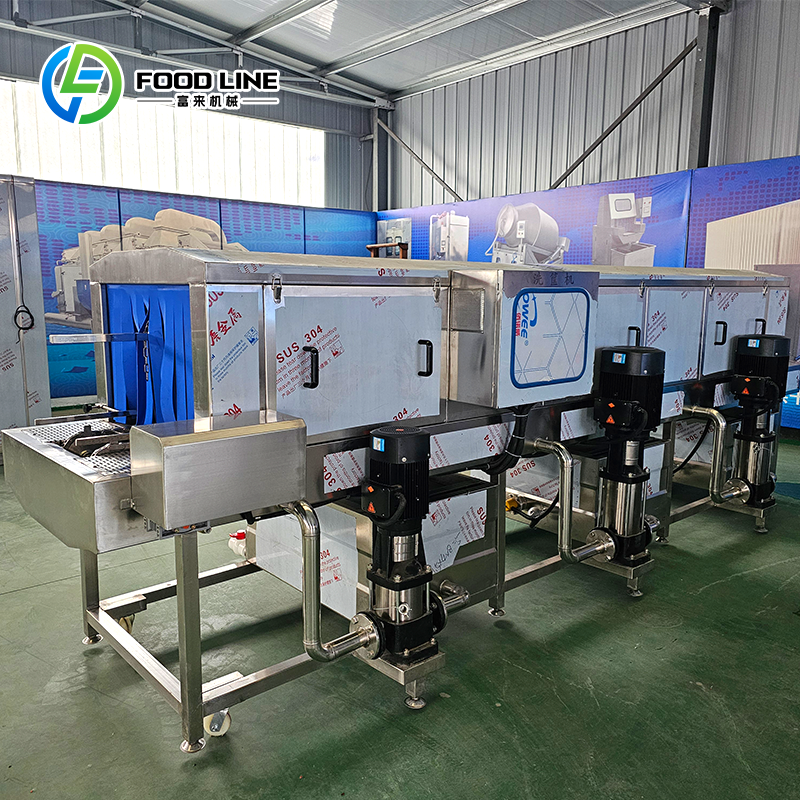 Laveuse de caisses industrielle conçue pour le nettoyage automatique des paniers dans les grandes usines agroalimentaires, avicoles et de produits de la mer