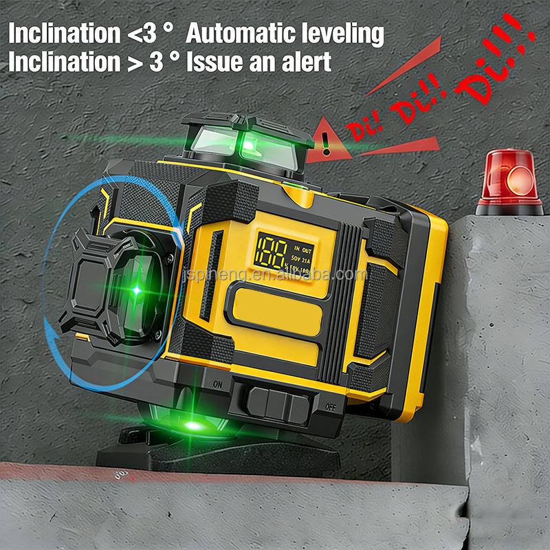 Niveau laser auto-nivelant industriel et DIY pour la construction, 3 lignes croisées de 16 mm, portée 520 mm, réglable, précis, vert, kit électrique