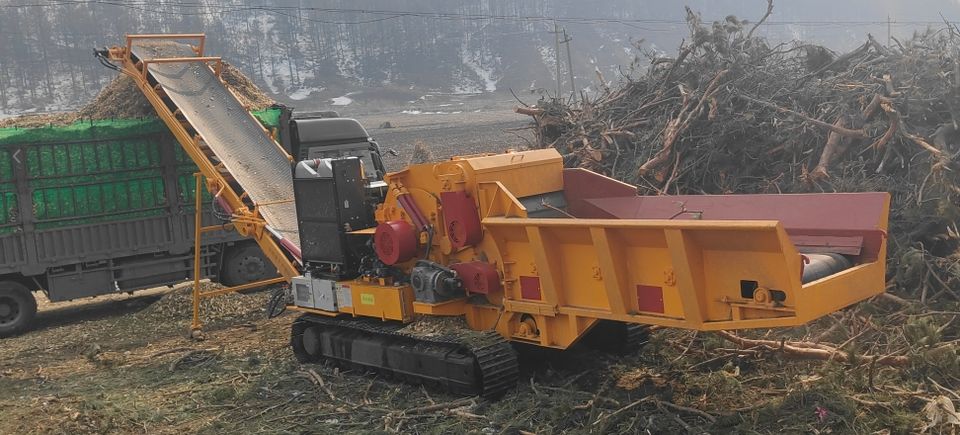 Broyeur de bois industriel à moteur diesel, déchiqueteur de bois économique, broyeur de briquettes de bois pour les déchets forestiers