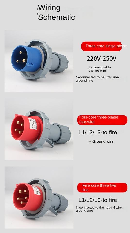 Prise électrique industrielle pour l'aviation, étanche IP67, 16A/32A, 3 conducteurs, 4 fils, connecteur mâle-femelle à 5 trous avec SDK