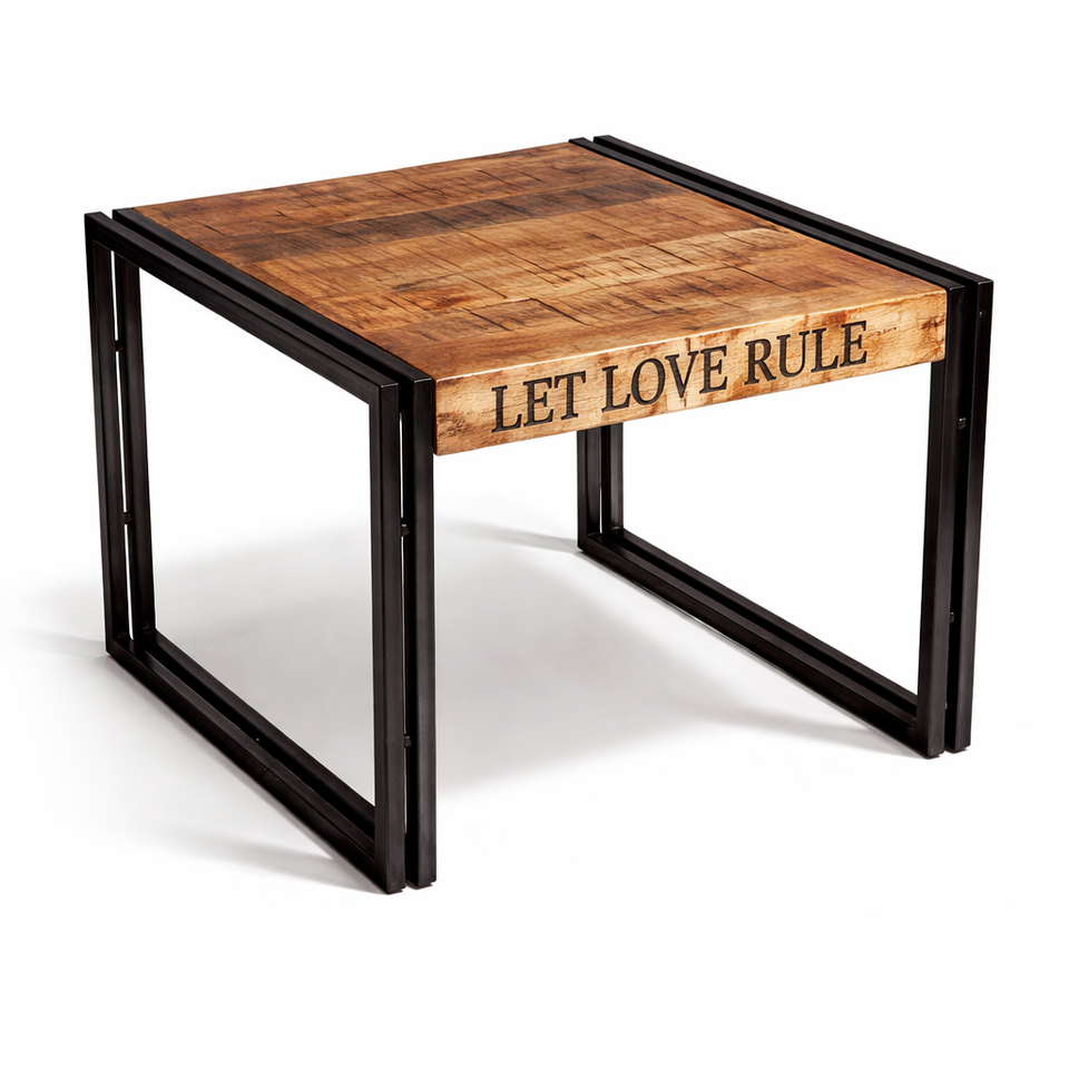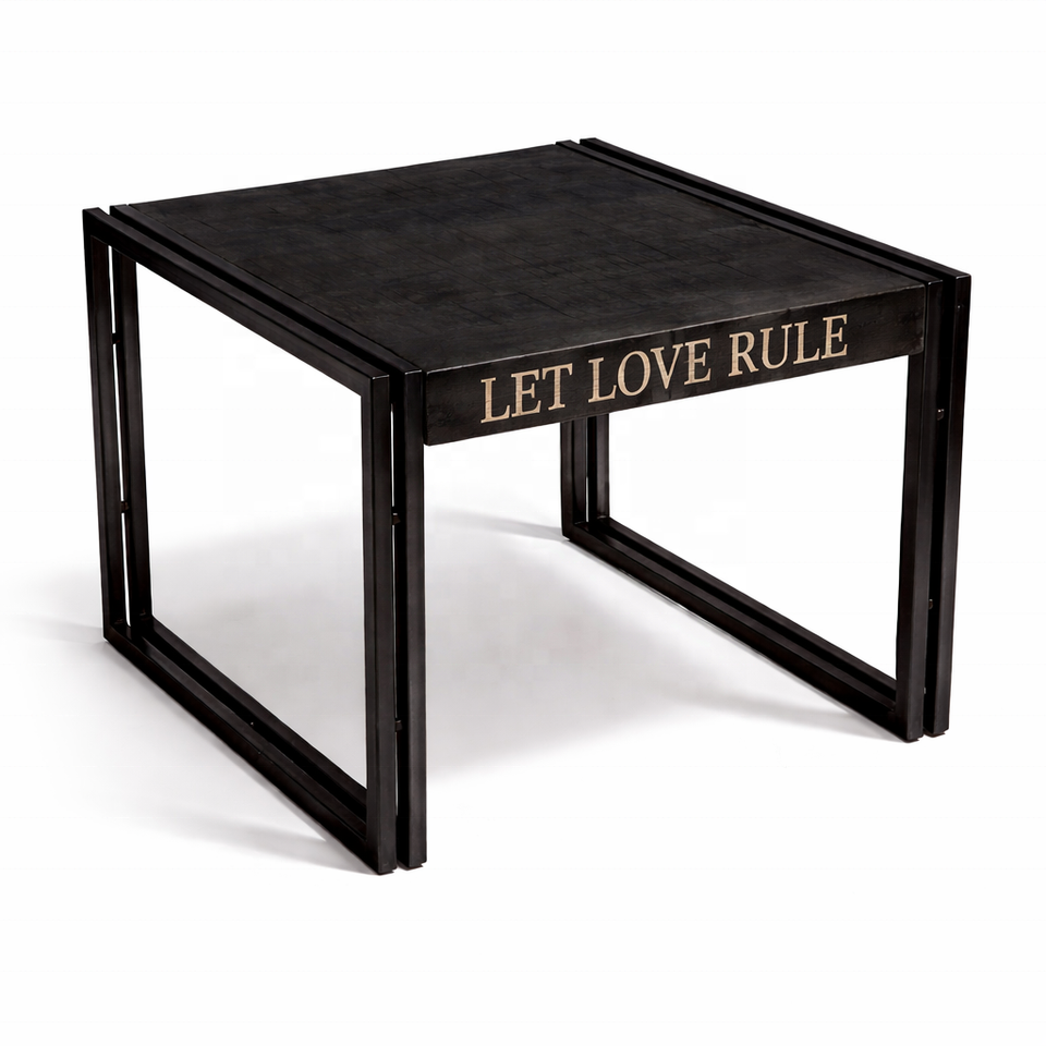 Table à manger en bois de manguier massif | Table de restaurant bistro industriel | Meubles de café à structure métallique, meubles compacts carrés pour la maison
