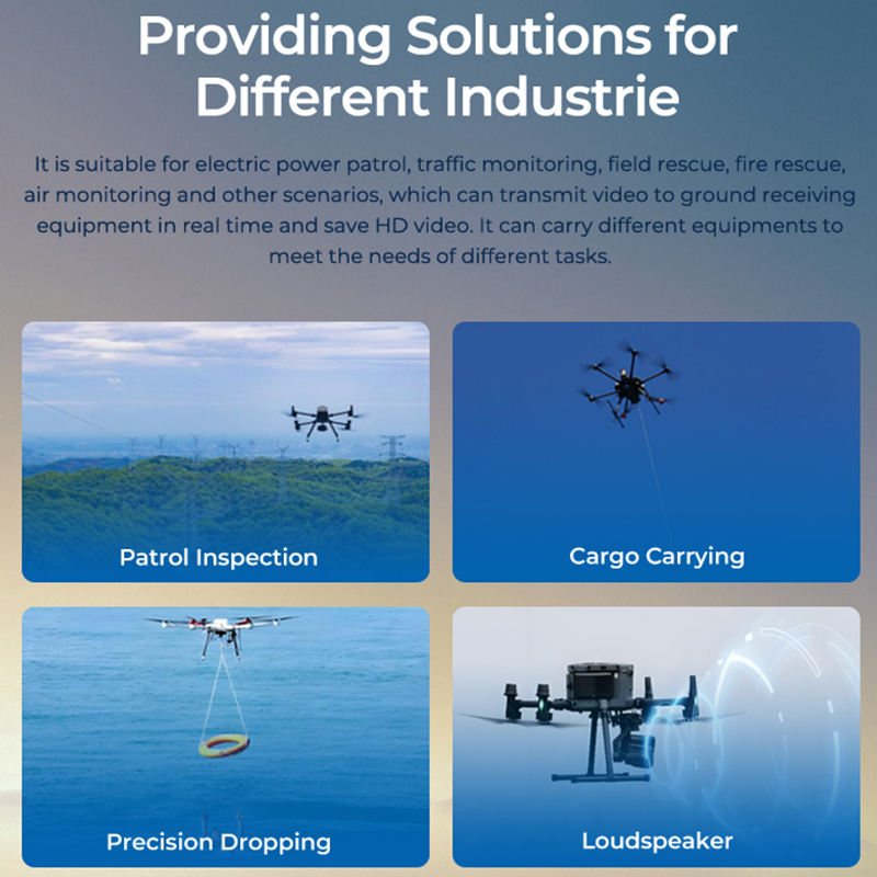 Drones industriels de lutte contre les incendies avec bombes extinctrices, tuyaux d'incendie et télécommande efficace