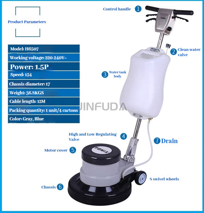 Nettoyeur de sol industriel, machine à récurer à disque unique pour sols durs, pierre, bois, tapis