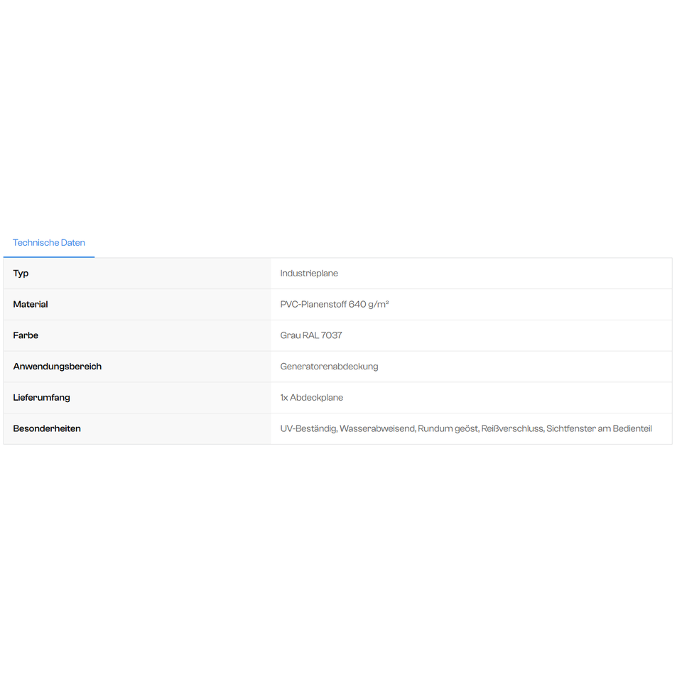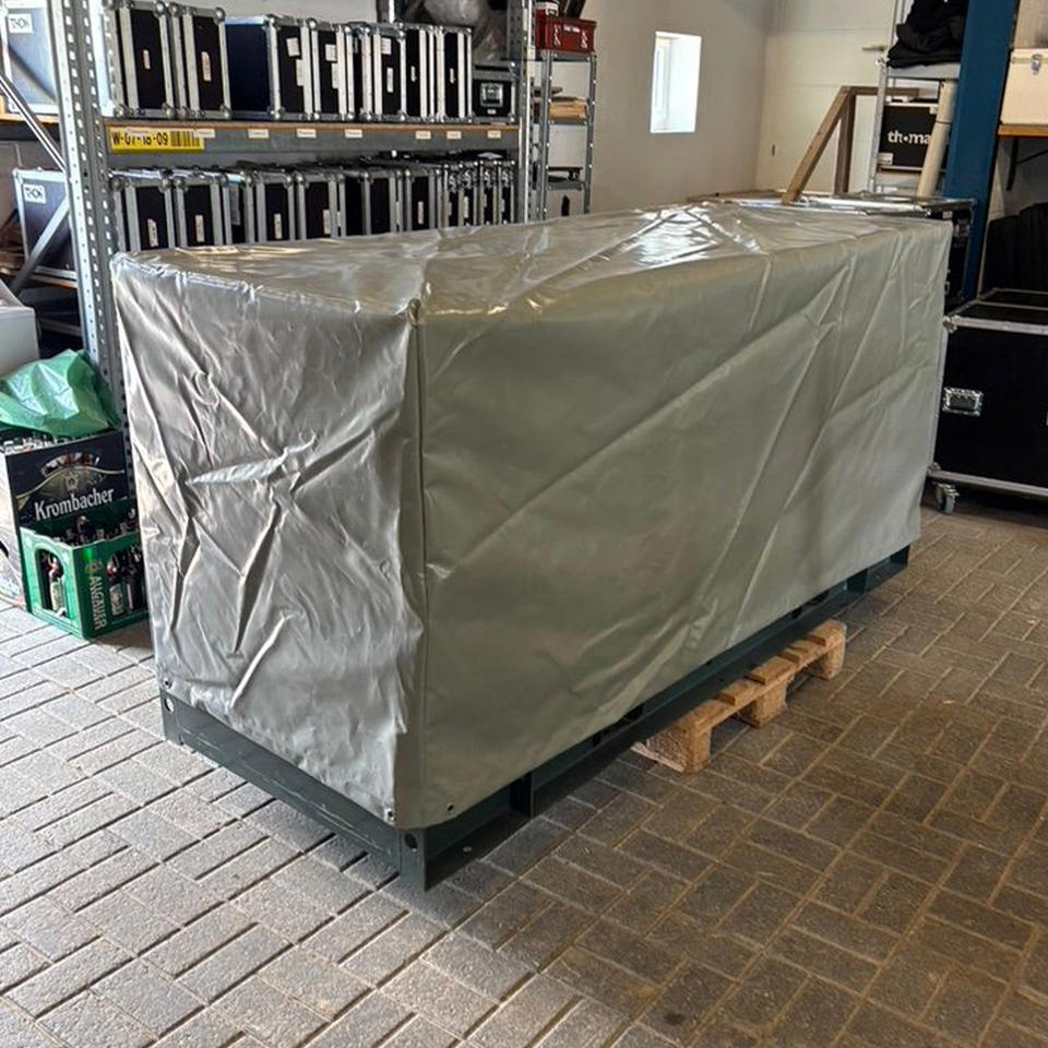 Bâche de couverture pour générateurs RX en PVC 640 g/m², gris RAL 7037, résistant aux UV, déperlant, qualité industrielle