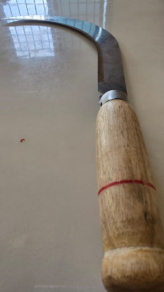 Industrial Grade Oil Palm Harvesting Sickle/Cutter 13'' Blade Plastic/Wood Handle Polished Finish RED/BLUE/BROWN Colors Shree