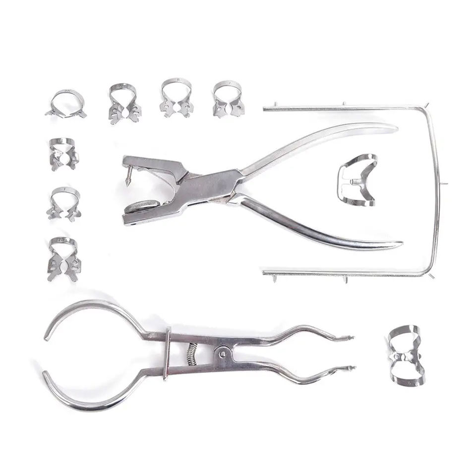Kit de barrage en caoutchouc endodontique en acier autoclavable avec 12 pinces dentaires de qualité industrielle