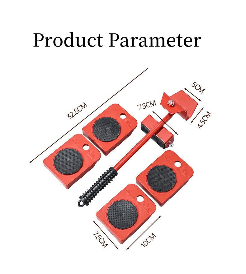 Ensemble de déplacement de meubles de qualité industrielle rouge, outils de levage pour objets lourds avec poignée en acier et plastique, support ODM personnalisé