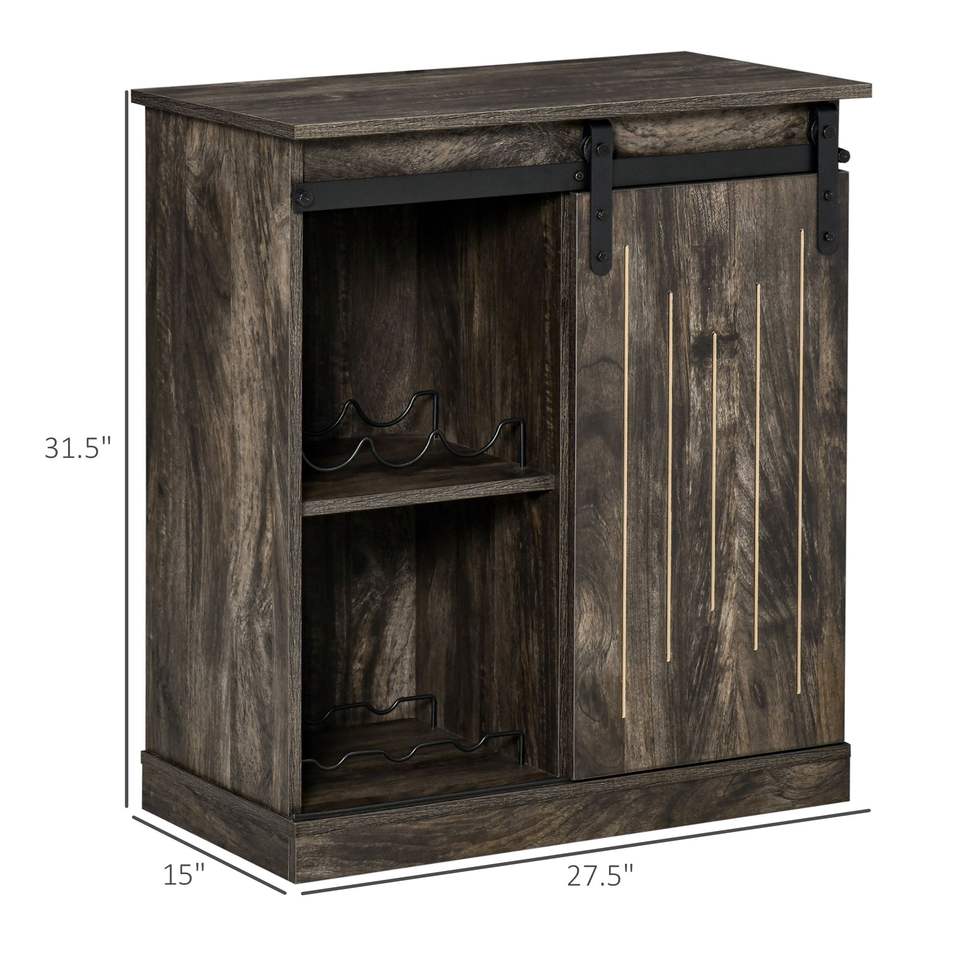Armoire de bar de service grise industrielle avec porte coulissante et meuble de buffet à 6 bouteilles de vin