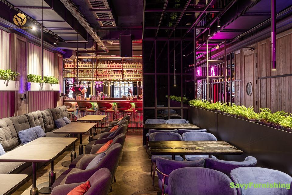 Comptoir de bar industriel moderne et rustique, design personnalisé pour bar à cocktails, mobilier de salon Speakeasy, canapé avec table