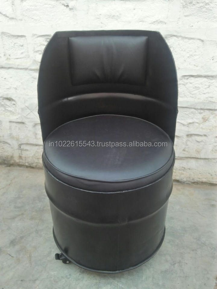 Chaise industrielle de baril en métal avec le siège rembourré en cuir, chaise vintage de baril en métal de restaurant