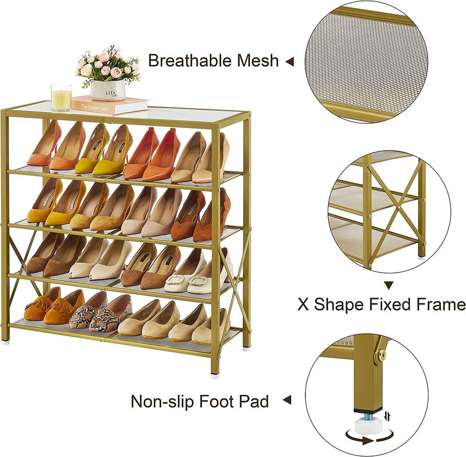 Étagère à chaussures industrielle en métal pour entrée de placard Étagère de rangement de chaussures en maille métallique avec cadre fixe en forme de X pour entrée et couloir