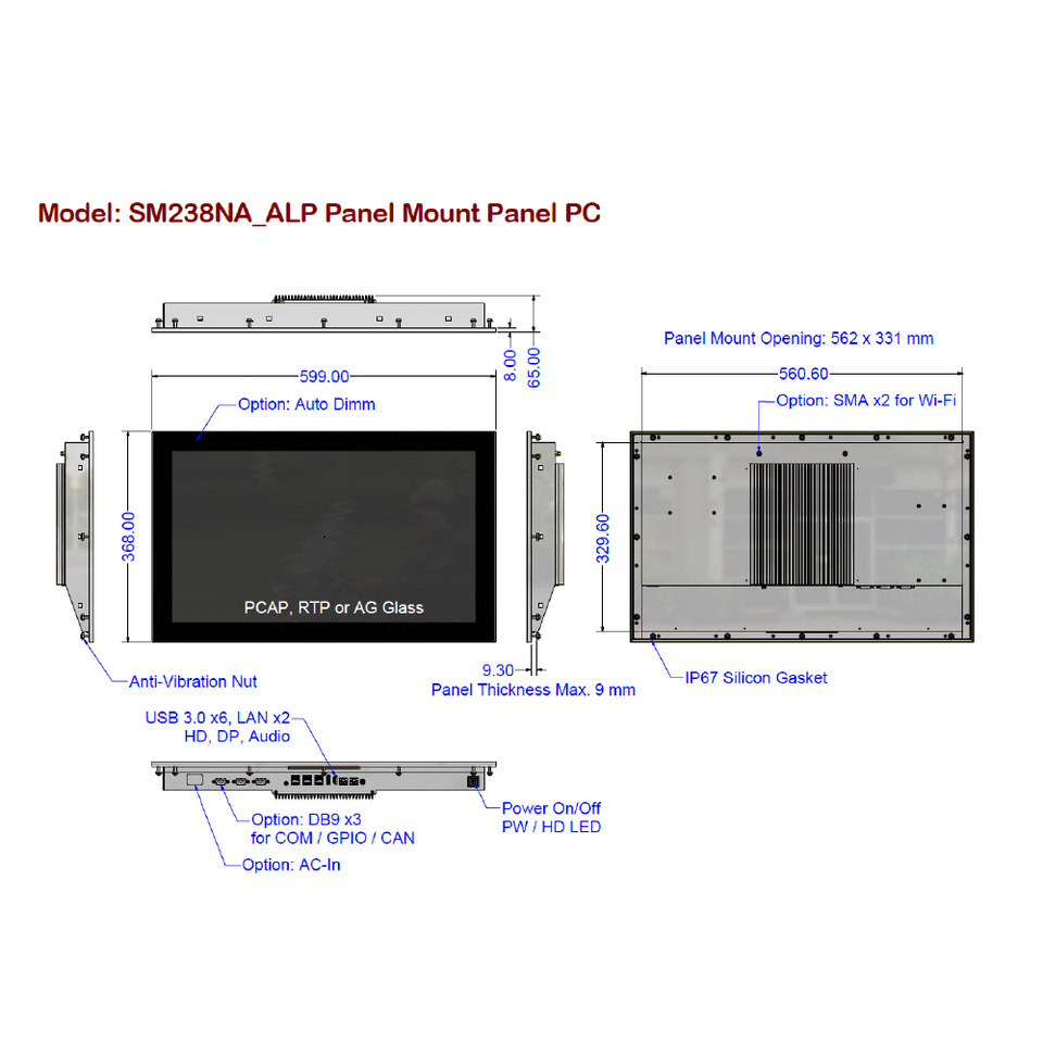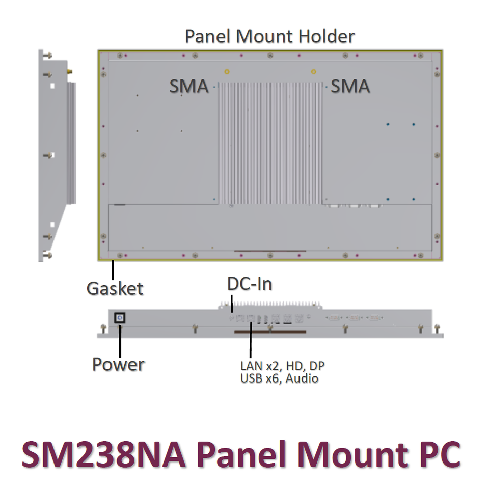 I/O Port:HD, DP, USB x6, Audio x1, DC-In Option: COM, GPIO, CAN ports