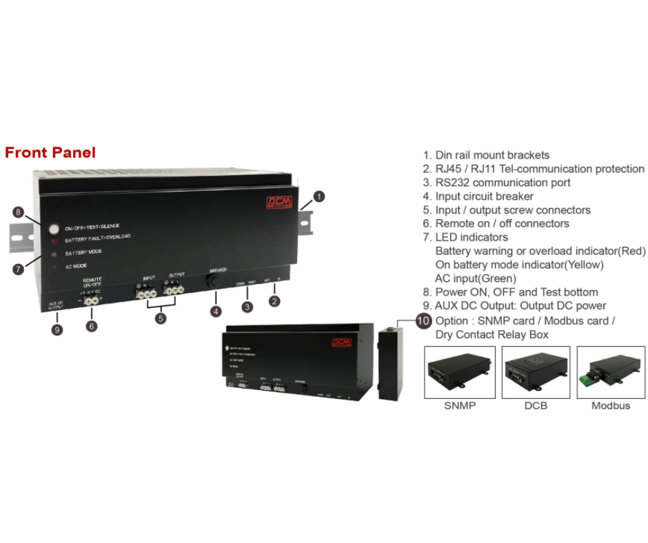 Unité d'alimentation sans interruption (ASI) monophasée industrielle 220V avec écran LED, onde sinusoïdale pure, montage sur rail, batterie au plomb DRU pour ordinateur et usage médical