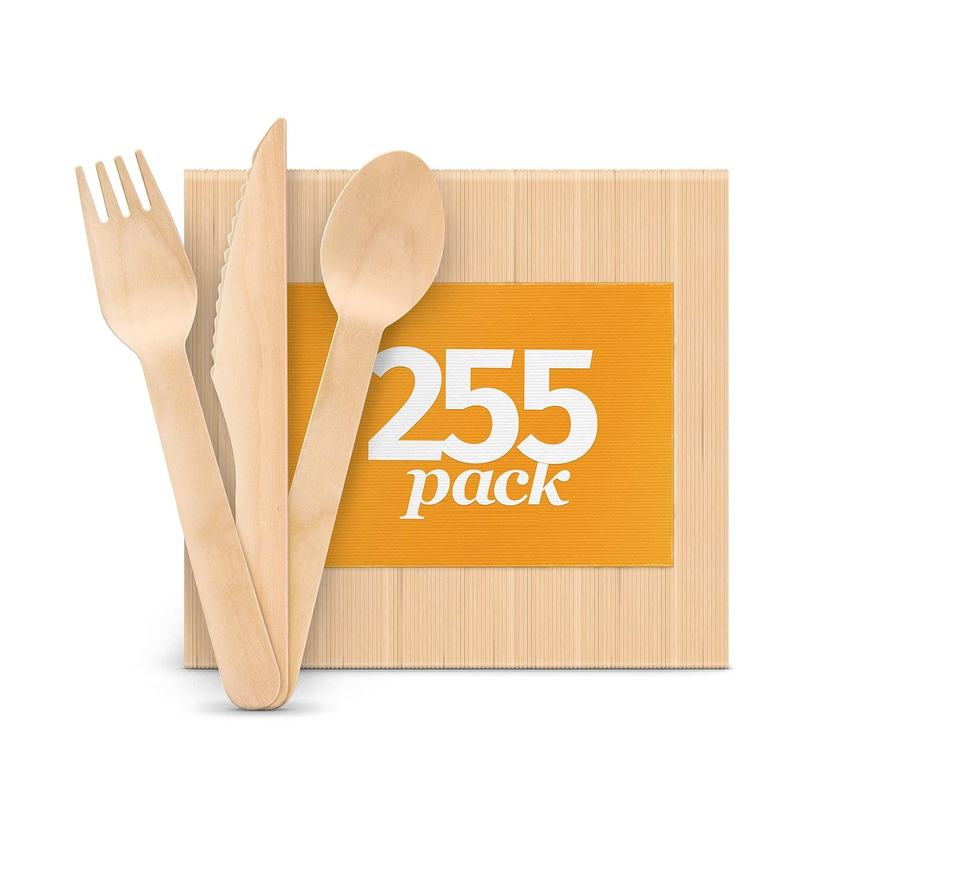 Vaisselle écologique de qualité industrielle, ensemble de vaisselle jetable, couverts en bois de bouleau, fourchette, couteau et cuillère en bois
