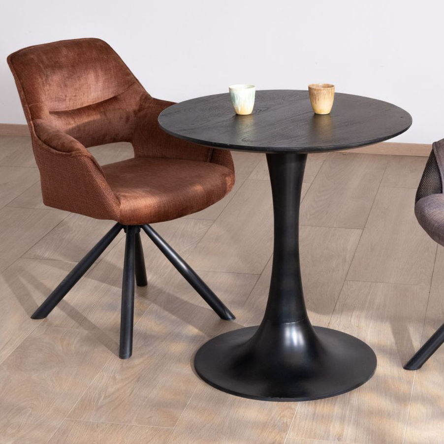 Table de salle à manger ronde industrielle de 24 pouces en forme de tulipe, fabriquée en bois de manguier massif et base en métal, table de salle à manger de café en plein air, table de restaurant
