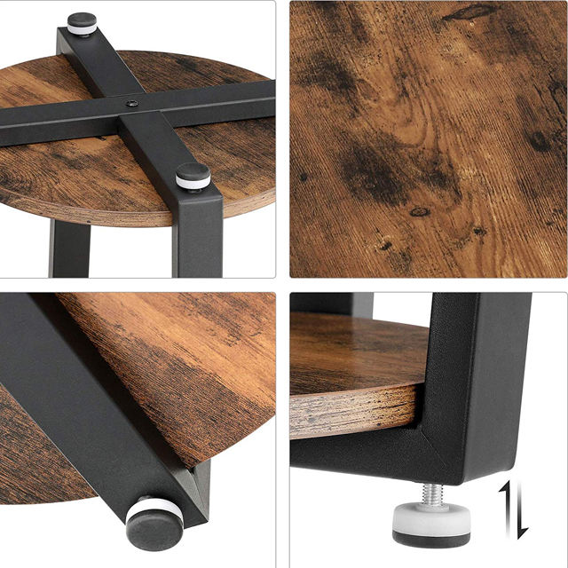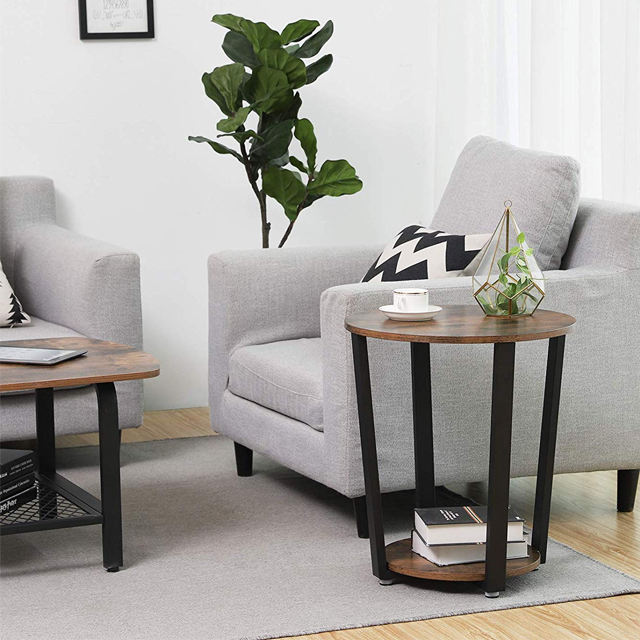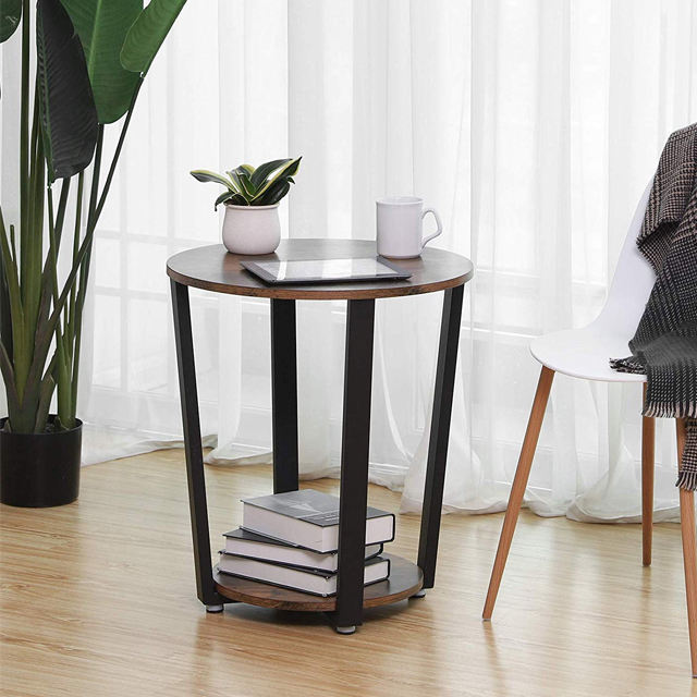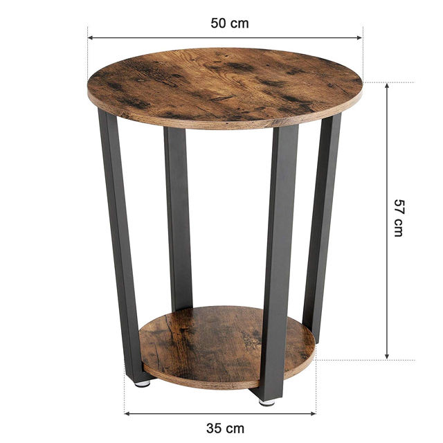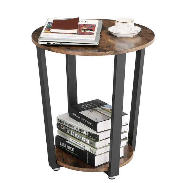 Table d'appoint ronde industrielle en métal avec support de rangement