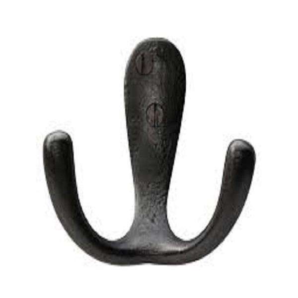 Industrial Rustic Rust Finish Black Iron Metal Double Wall Heavy Duty Rust Resistant Space Saving Multi-Purpose Wall Mount Hook