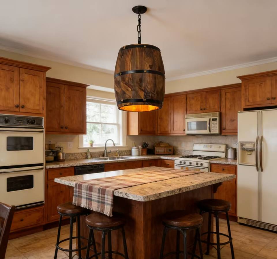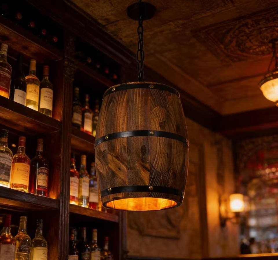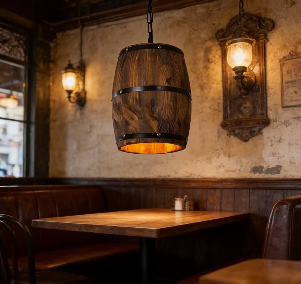 Lustre en bois de baril de vin suspendu, style industriel rustique vintage, LED, lumière blanc chaud, pour la maison, la cuisine, le restaurant, le bar
