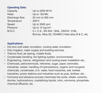 Discharge Pipe Size:25 mm to 300 mm